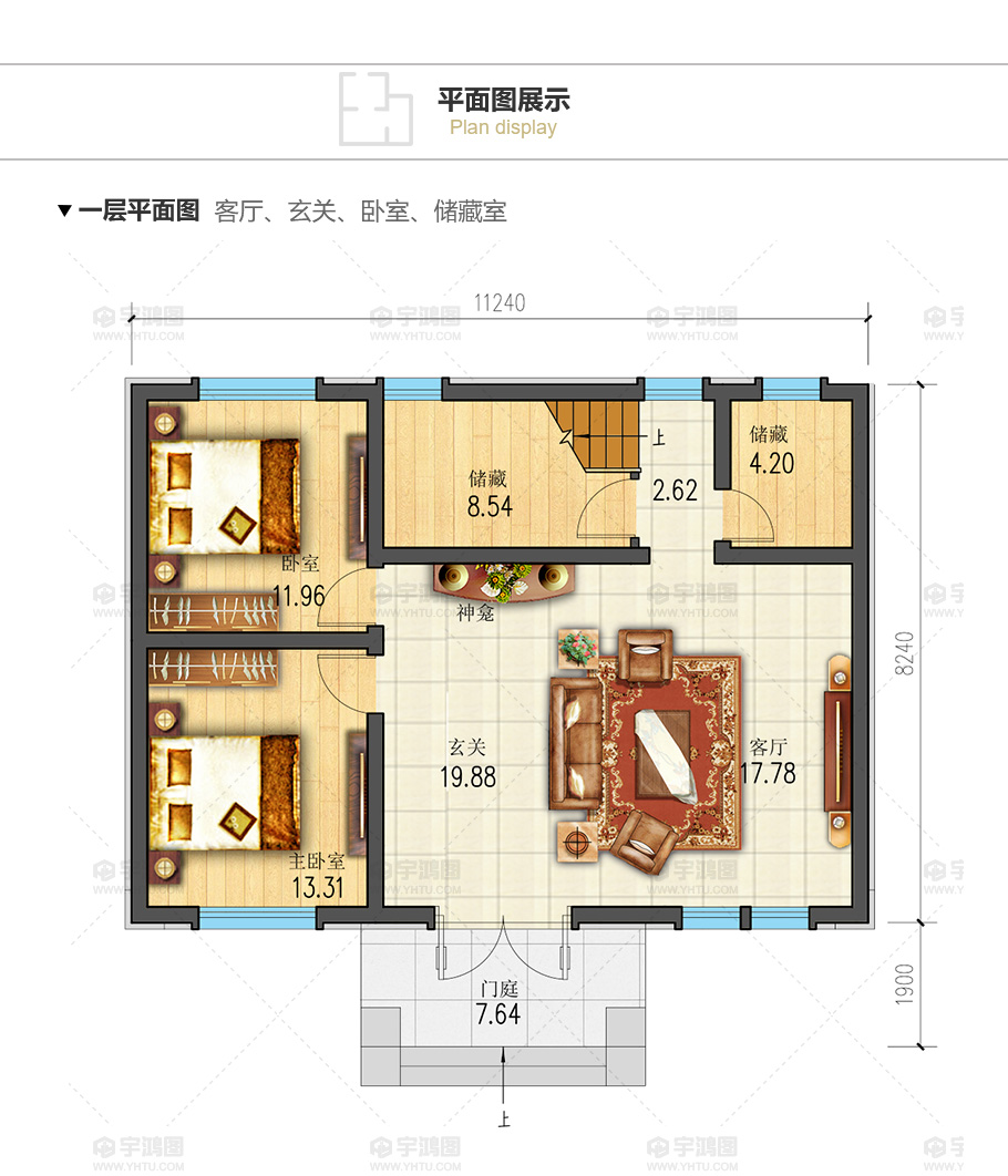 開間:11.24米 進深:10.14米 占地面積:92.6平方米 建筑面積:193.44平方米