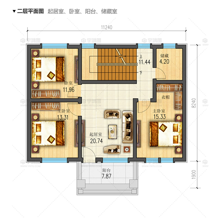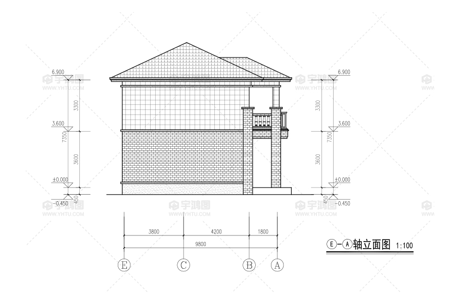 風格:簡歐 層數:二層 結構形式:磚混結構 圖紙編號:YH-A-2096