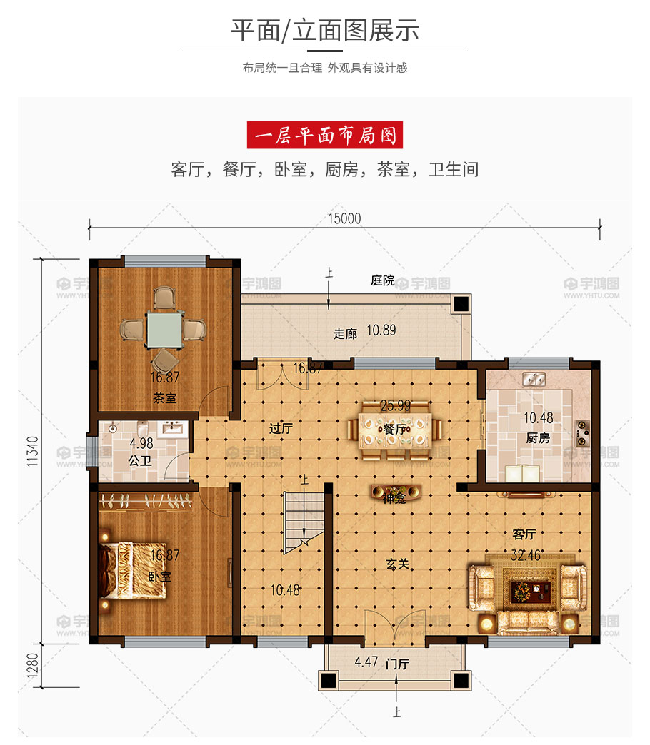 | 開間:15米 | 進深:12.62米 | 占地面積:138.42平方米 | 建筑面積:294平方米 |