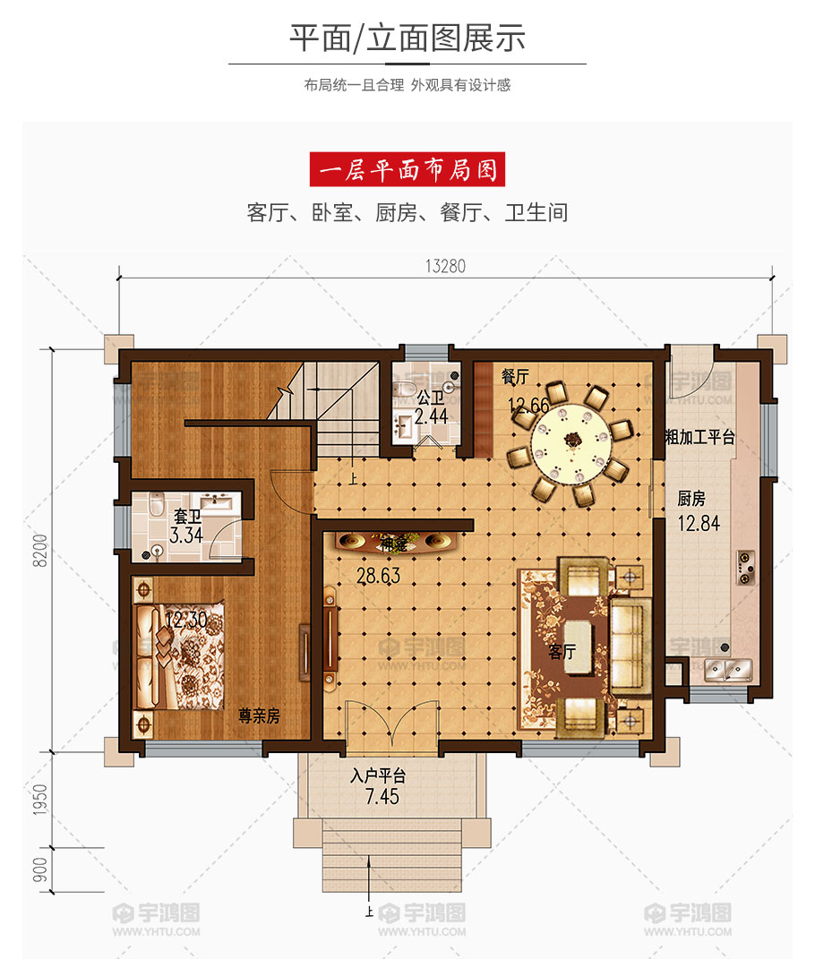 開間:13.28米 進深:11.05米 占地面積:106.5平方米 建筑面積:398.6平方米