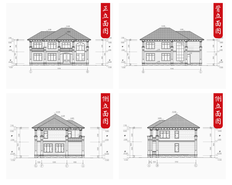 | 建筑圖: | 建筑平面圖:一層平面圖,二層平面圖; 建筑立面圖:東立面圖,西立面圖,南立面圖,北立面圖,剖面圖; 大樣圖:樓梯詳圖,細部大樣,門窗大樣 |