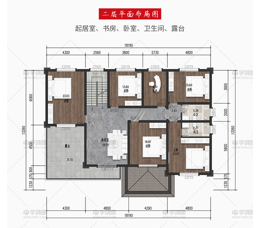 風格:歐式 層數:二層 結構形式:磚混結構 圖紙編號:YH-A-2199