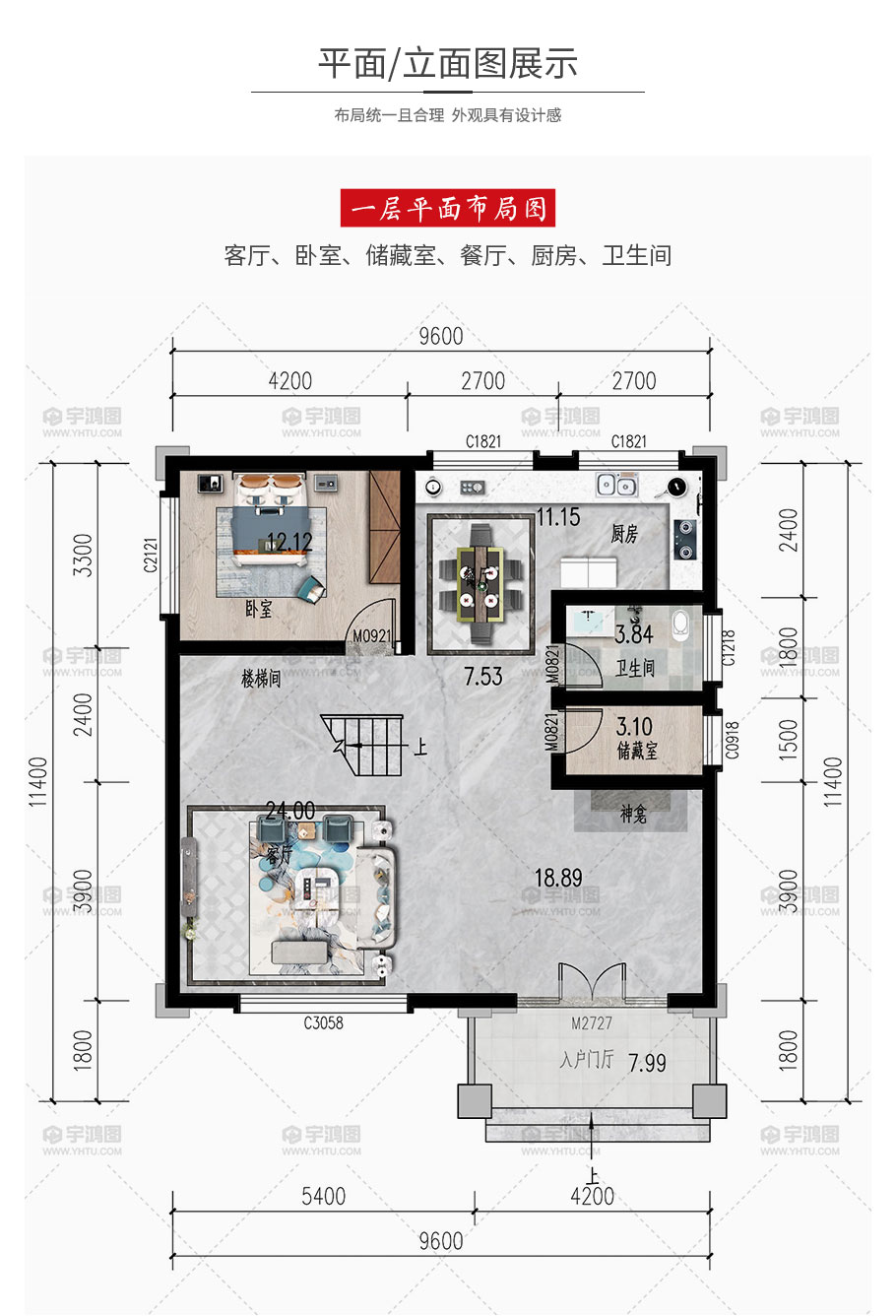 - 開間尺寸: 9.6米