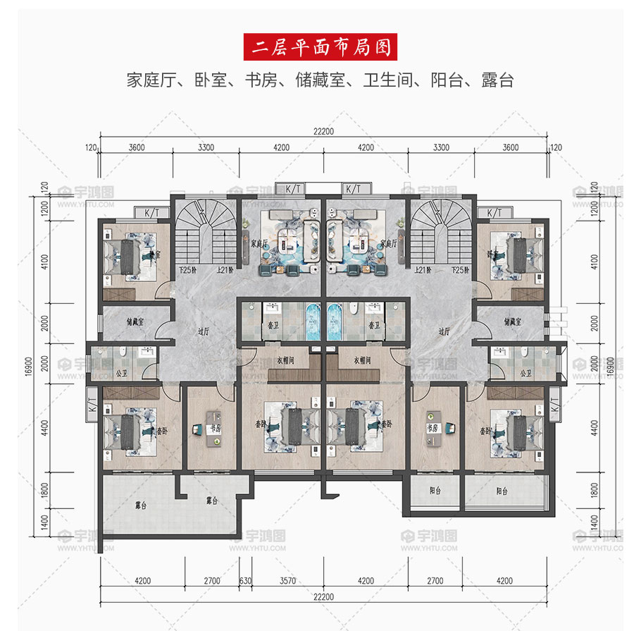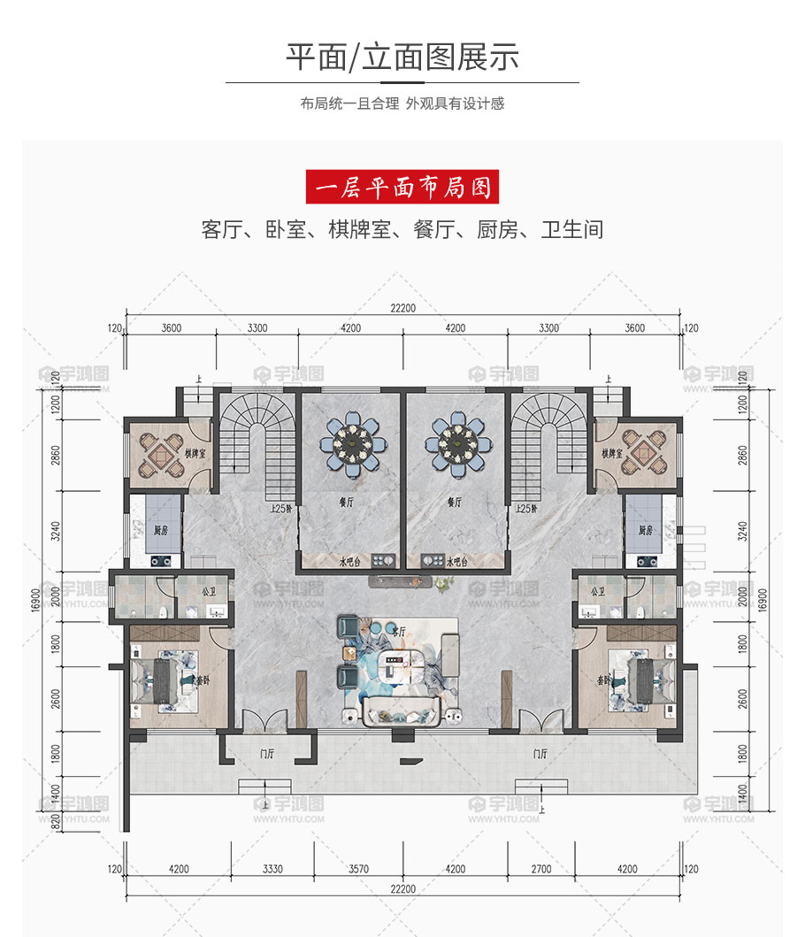 成品圖紙>高端大氣三層現(xiàn)代雙拼別墅占地305平框架別墅
