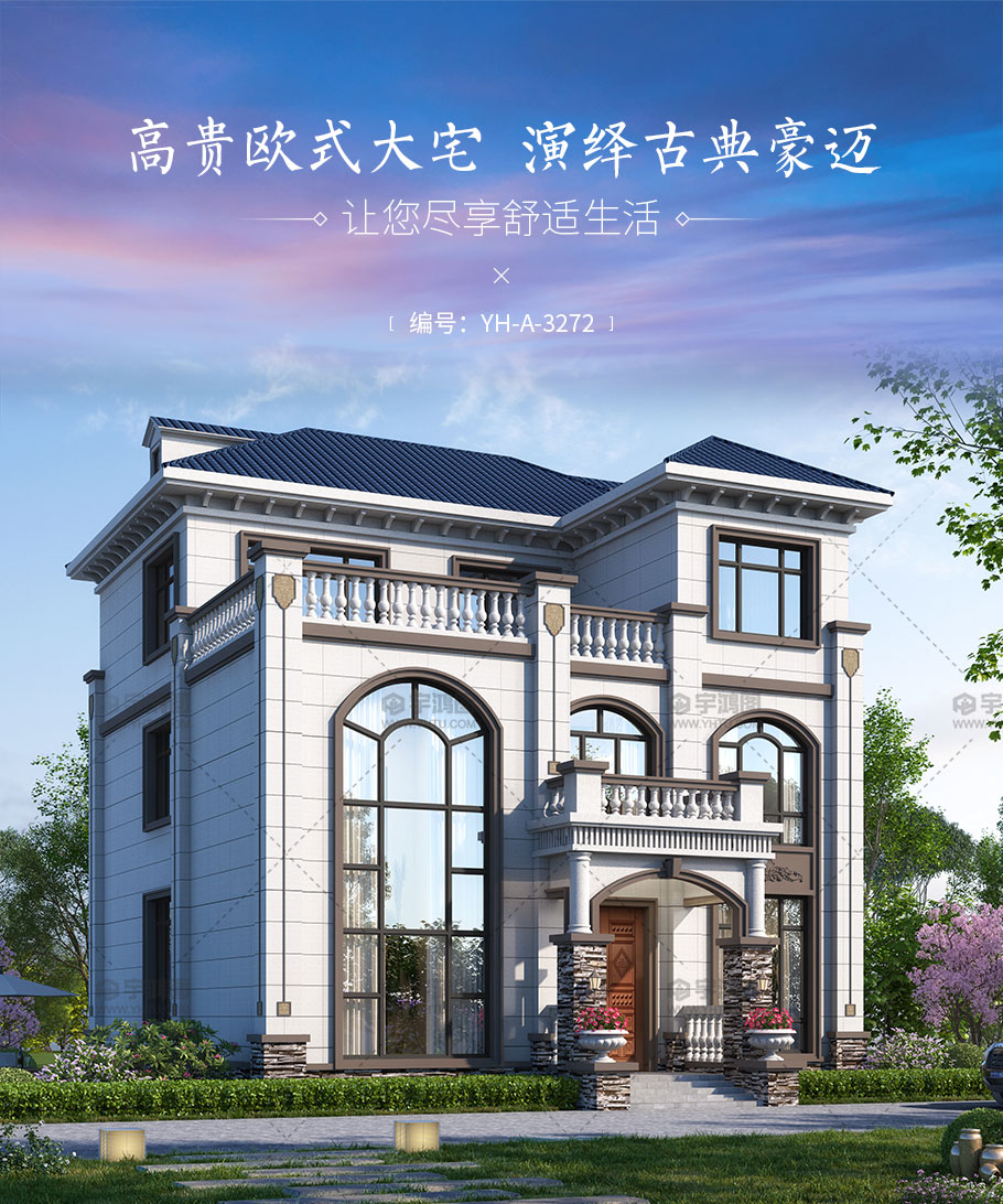風格:歐式 層數:三層 結構形式:框架結構 圖紙編號:YH-A-3272