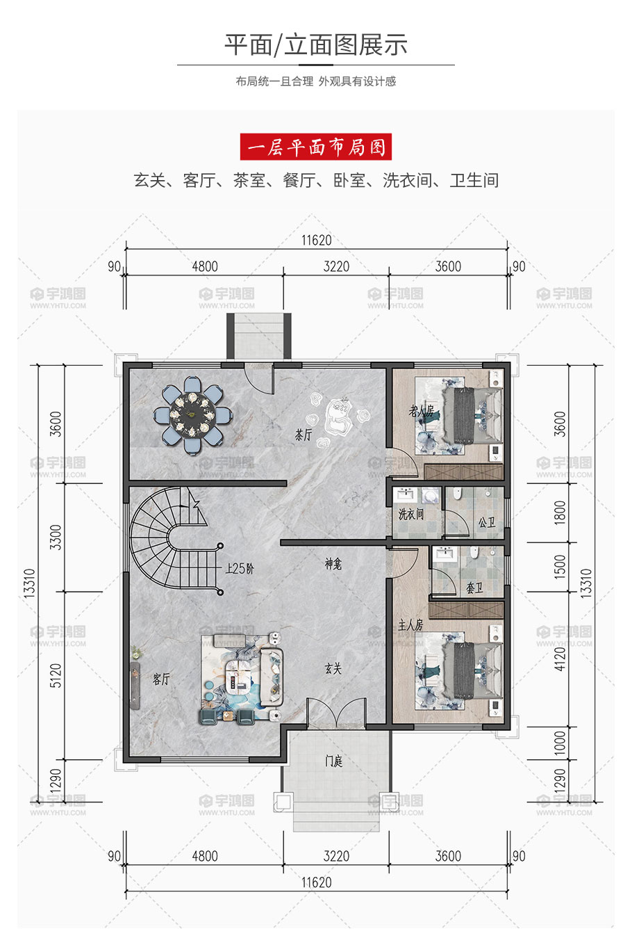 開間:11.6米 進深:13.3米 占地面積:141平方米 建筑面積:351平方米