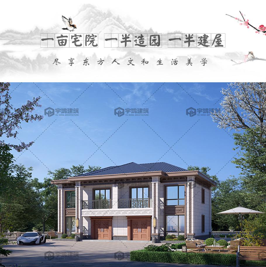 兩層雙拼新中式磚混結(jié)構(gòu)別墅圖紙自建別墅設(shè)計(jì)圖
